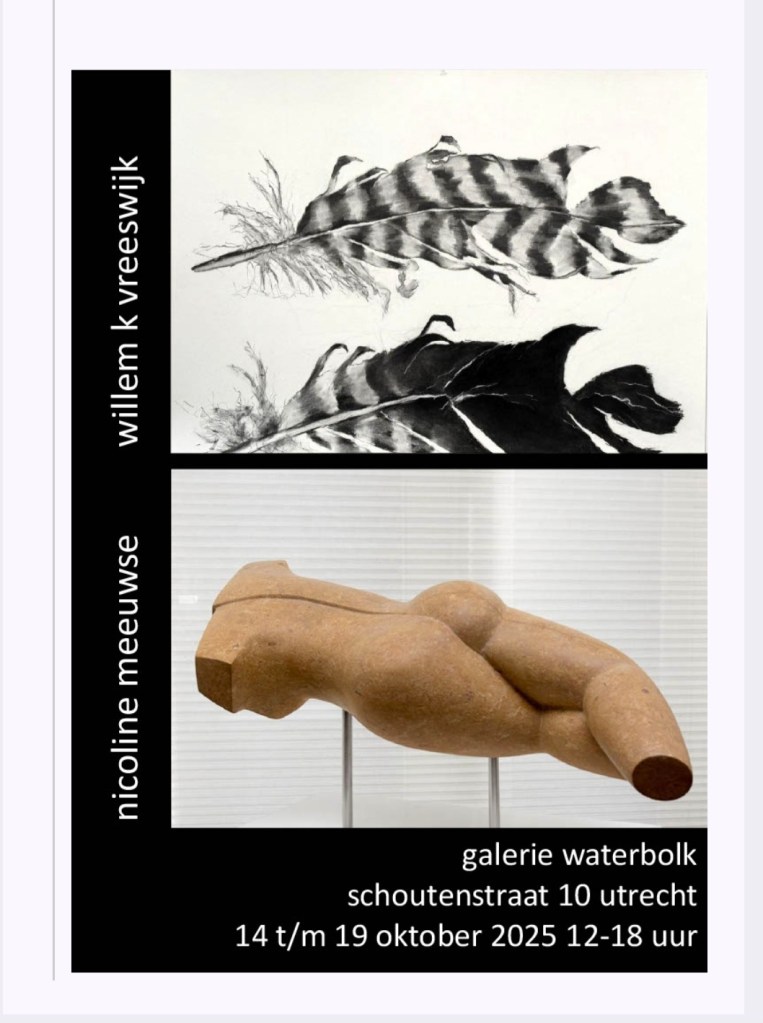 2025 : 14 – 19 oktober 2025 Expositie willem k vreeswijk en nicoline meeuwse met tekeningen en beelden. Galerie Niek Waterbolk, Schoutenstraat 10 Utrecht